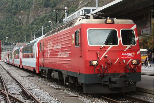 スイスの「氷河急行」(Glacier Express)は、車窓からアルプスの絶景が眺められる観光列車として、日本人にも大人気である。 ブリークからサンモリッツまで乗車した時の記録をお届けする。 訪問日: 2012年9月1日