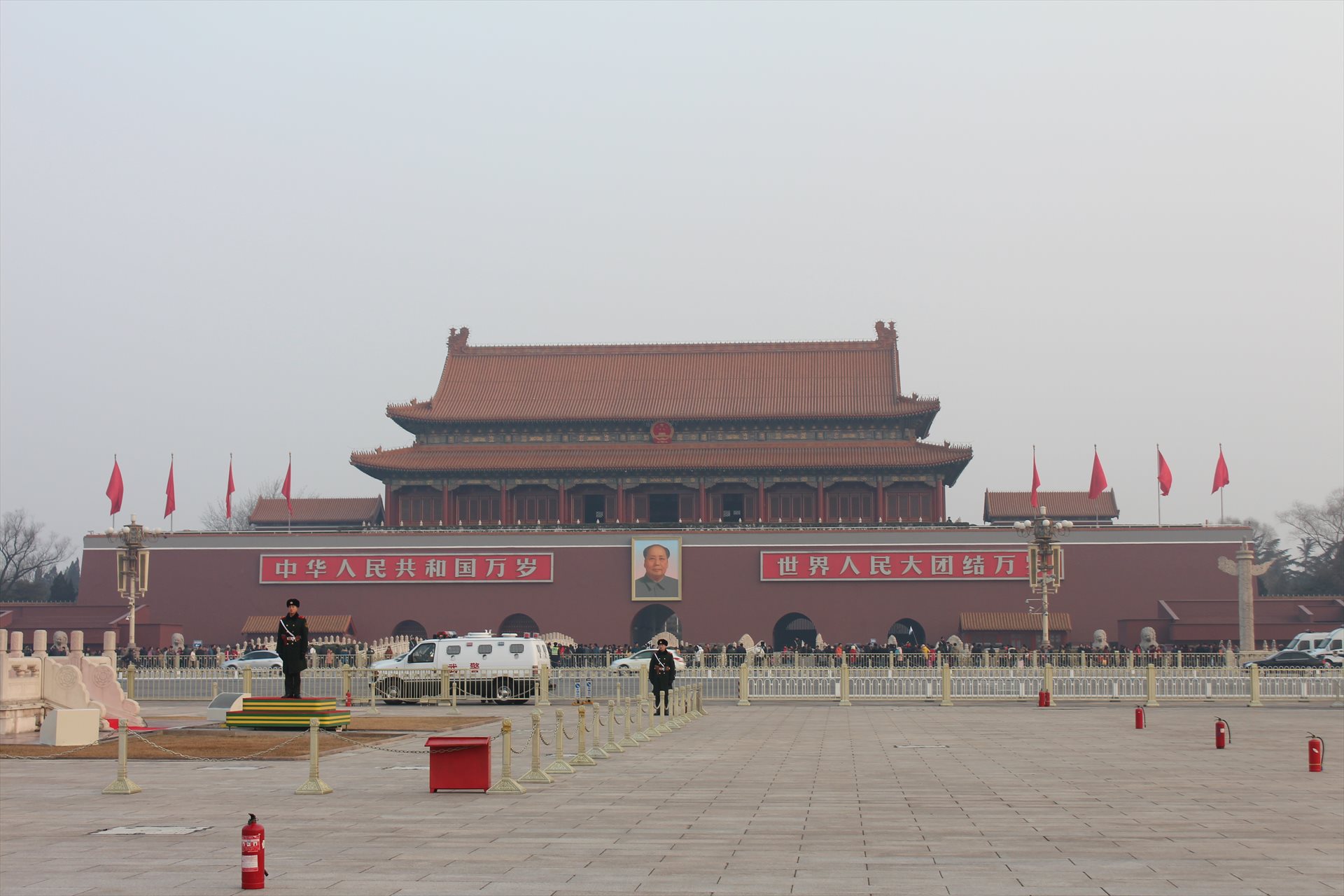 北京から列車に乗る前に、中国のシンボルである天安門を見学した。