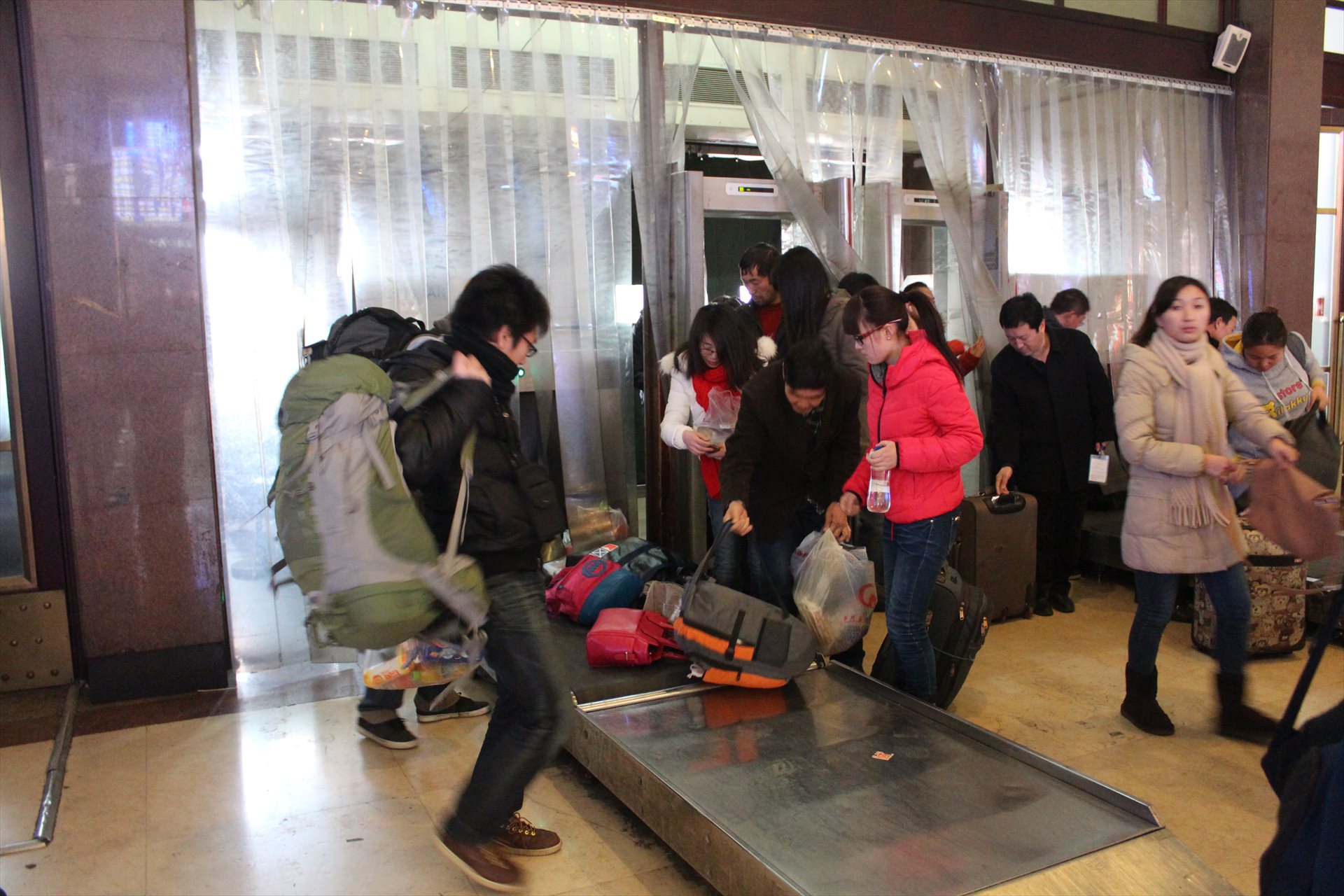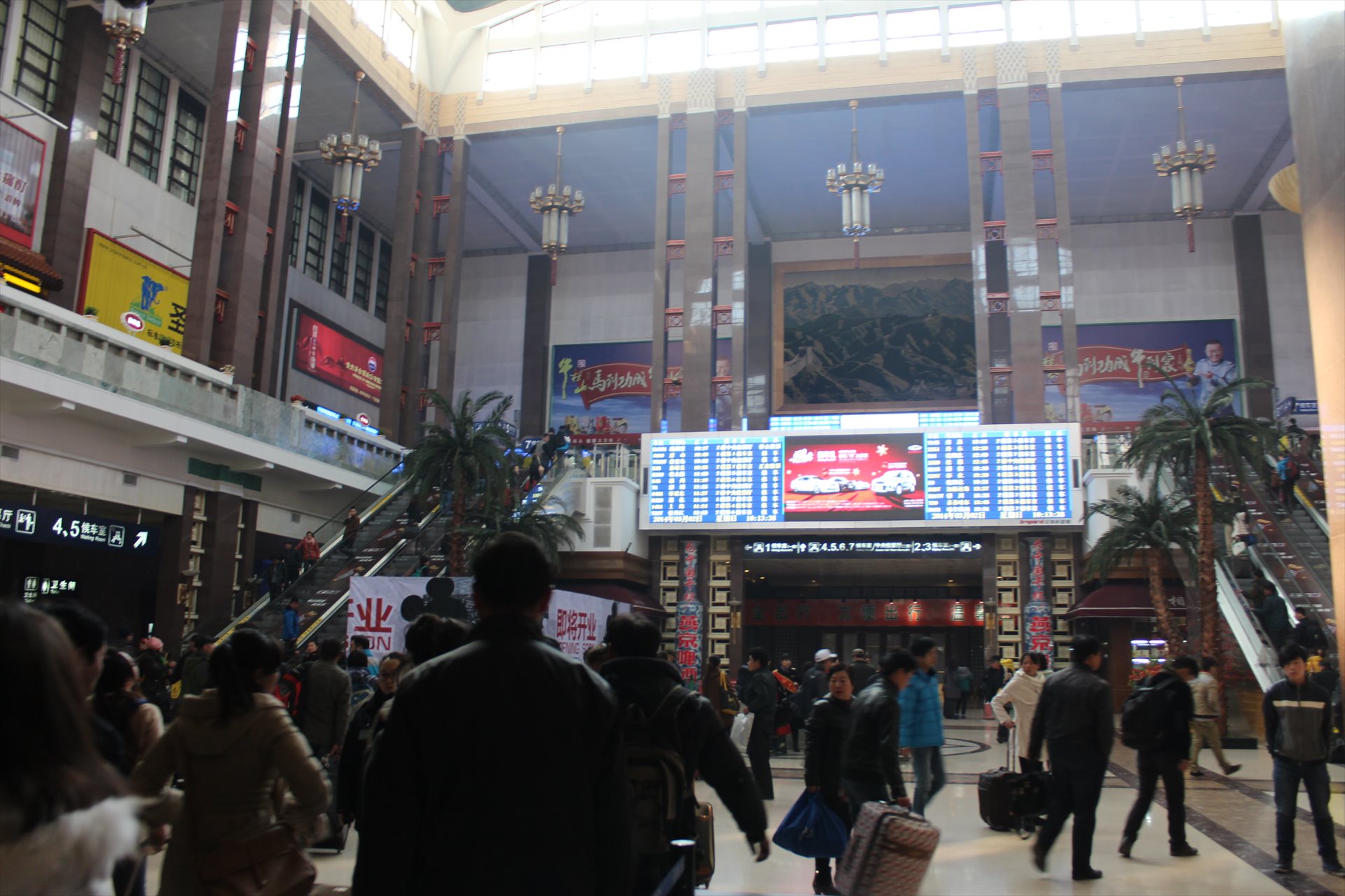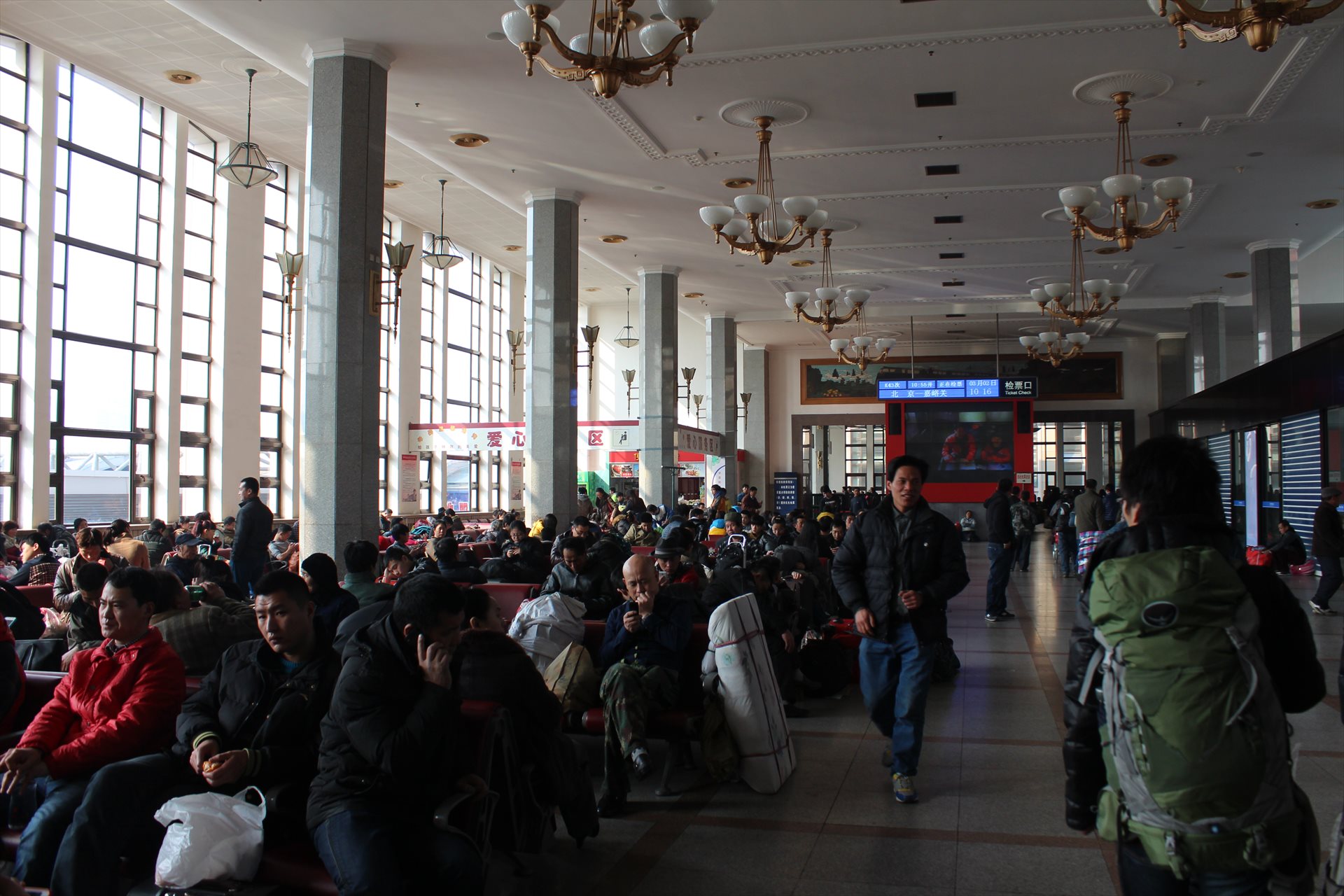 北京駅の駅舎は古く、待合室もレトロ感が漂っていた。それ以上に昼間は照明がついていないためとても暗い。