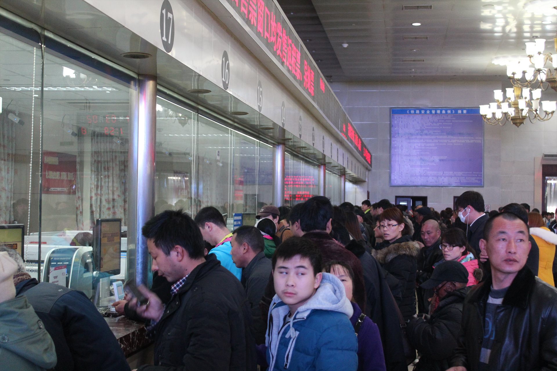 北京駅のチケット窓口には長蛇の列ができていた。2014年当時の中国の駅窓口はどこもこんな混雑だった。