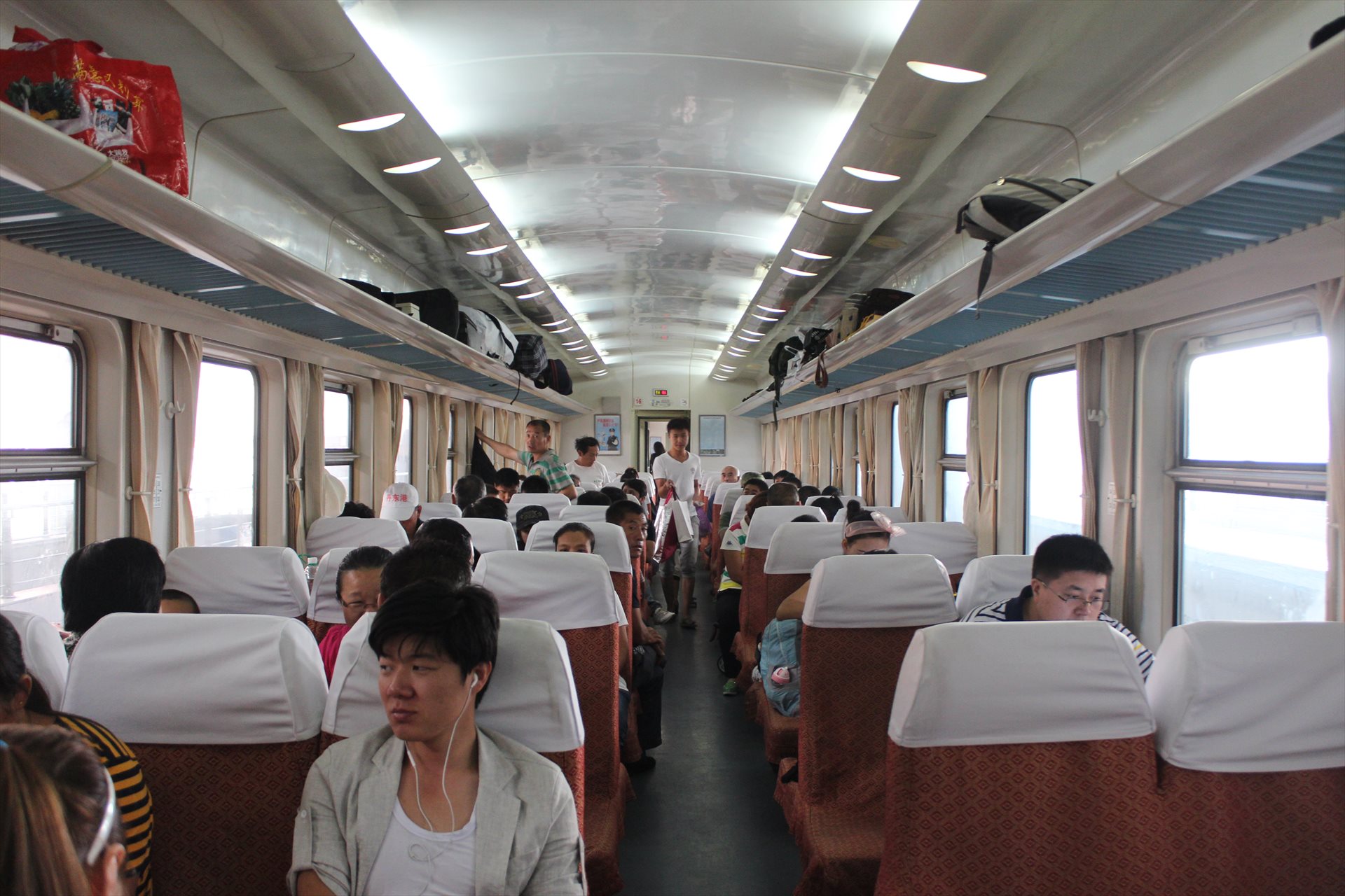 今回は新空調車両の硬座車(エアコン付き普通車)を利用する。中国の在来線ではよくあるタイプの車両である。