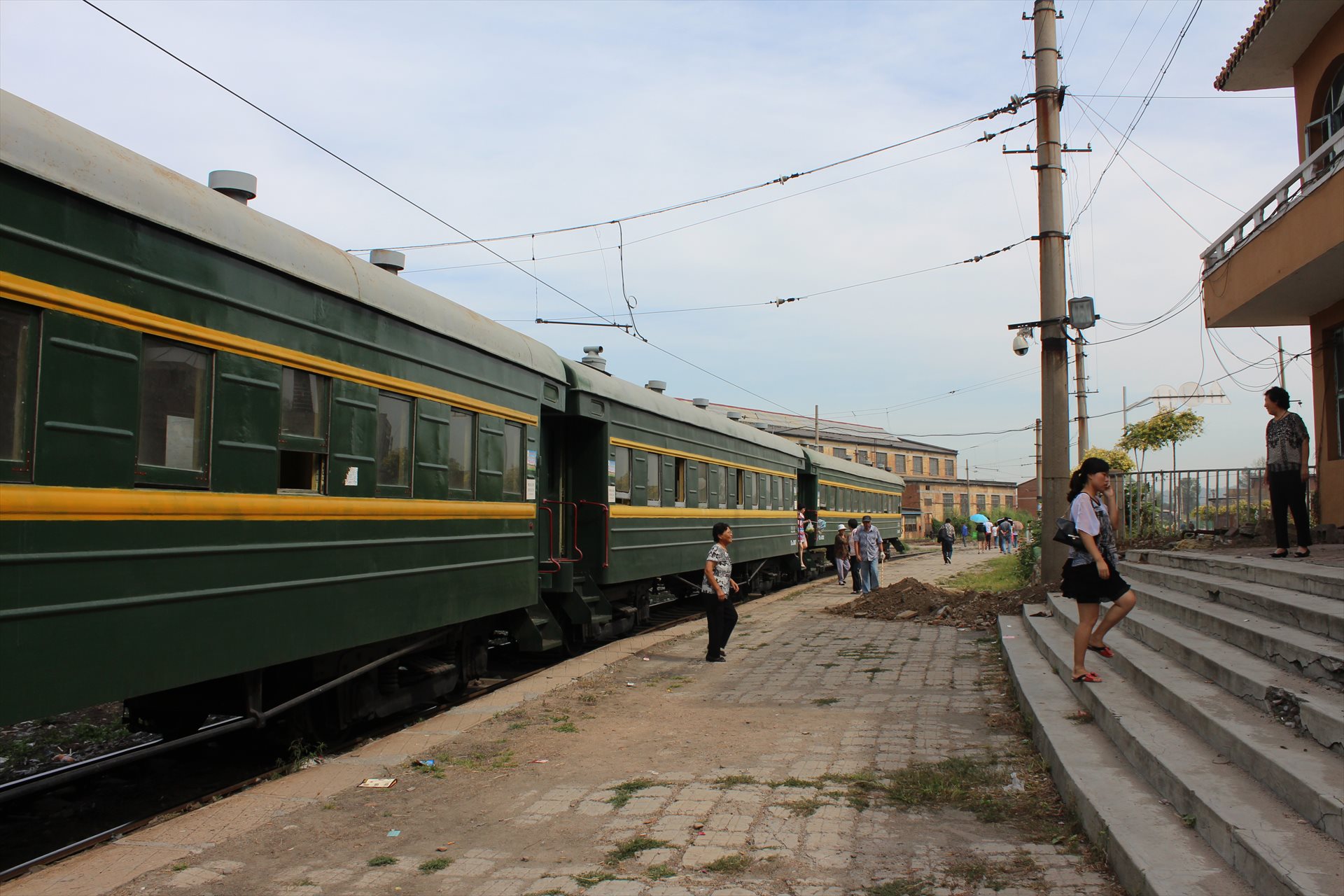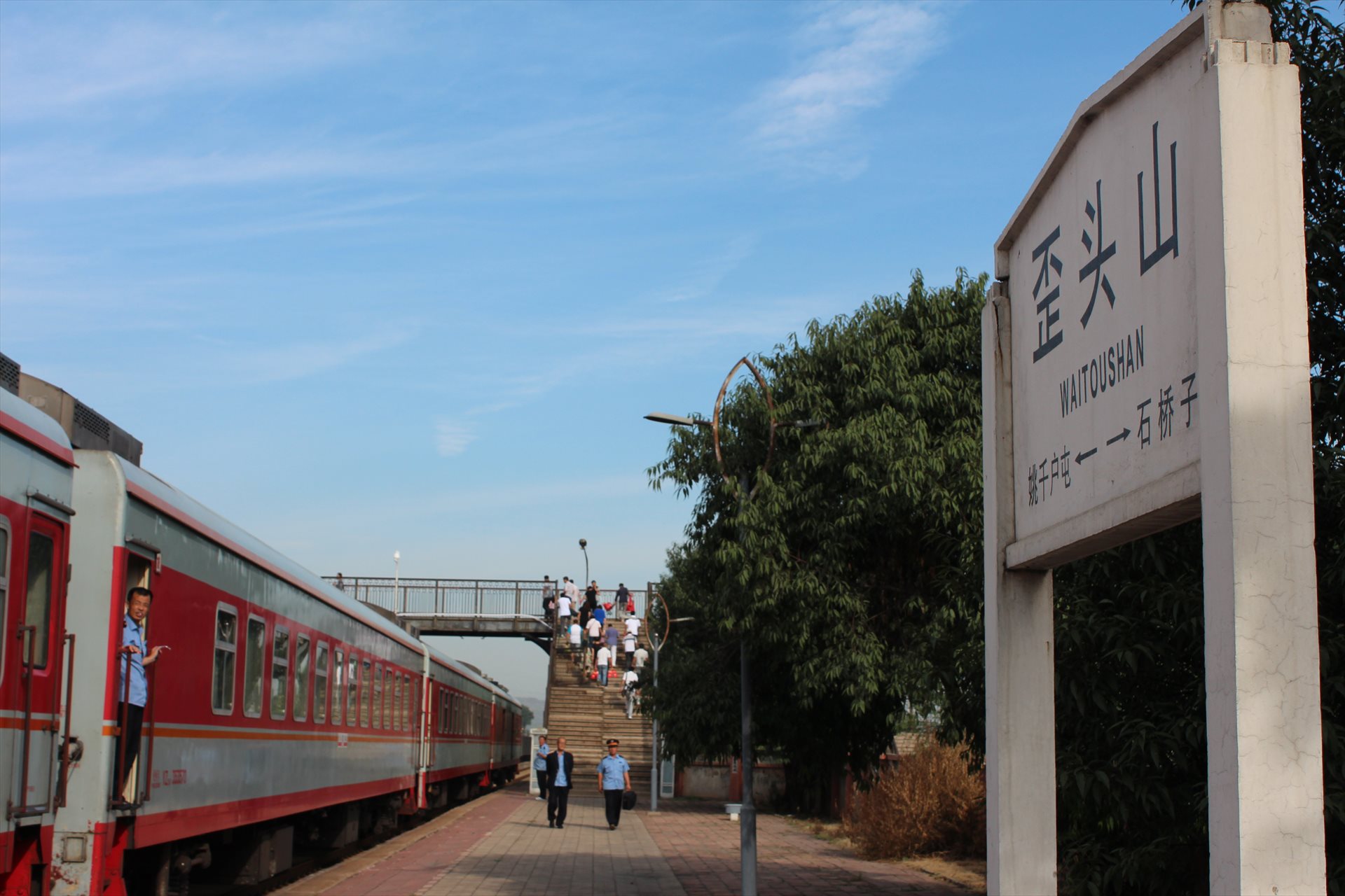 1時間ほど乗車して、瀋陽から南に50kmほどのところにある歪頭山駅に07:30に到着した。乗客たちはぞろぞろと跨線橋を渡っていく。