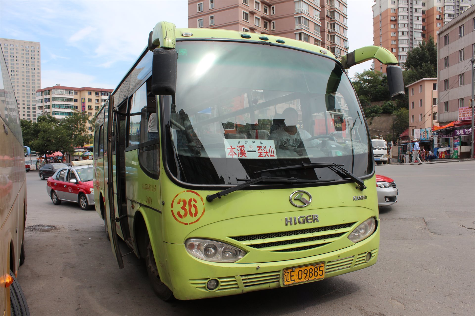 鉱山駅の周囲には鉱山施設や住宅が広がる村しかない。近くの都市である本渓行きの路線バスが出ているので、それに乗って移動する。