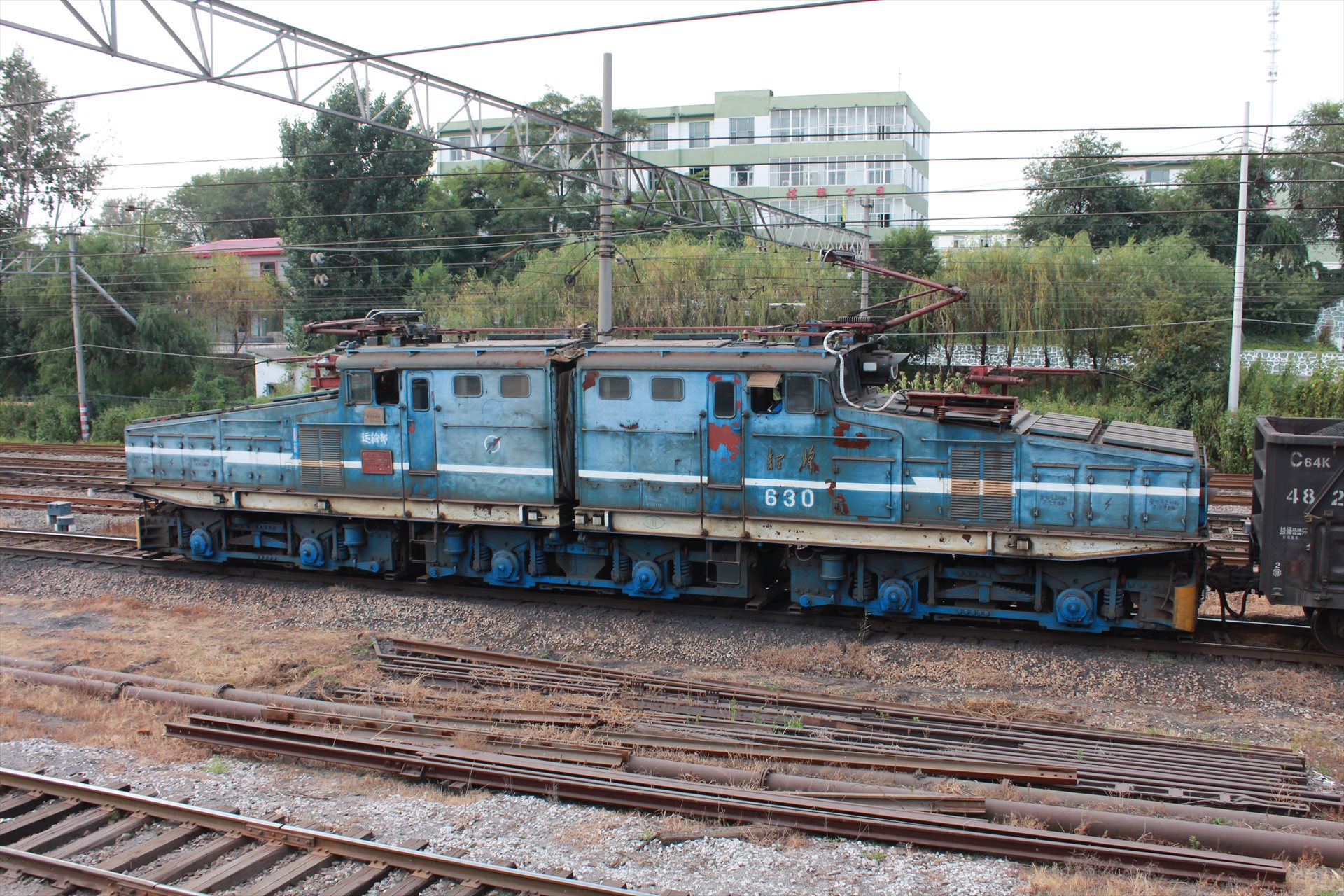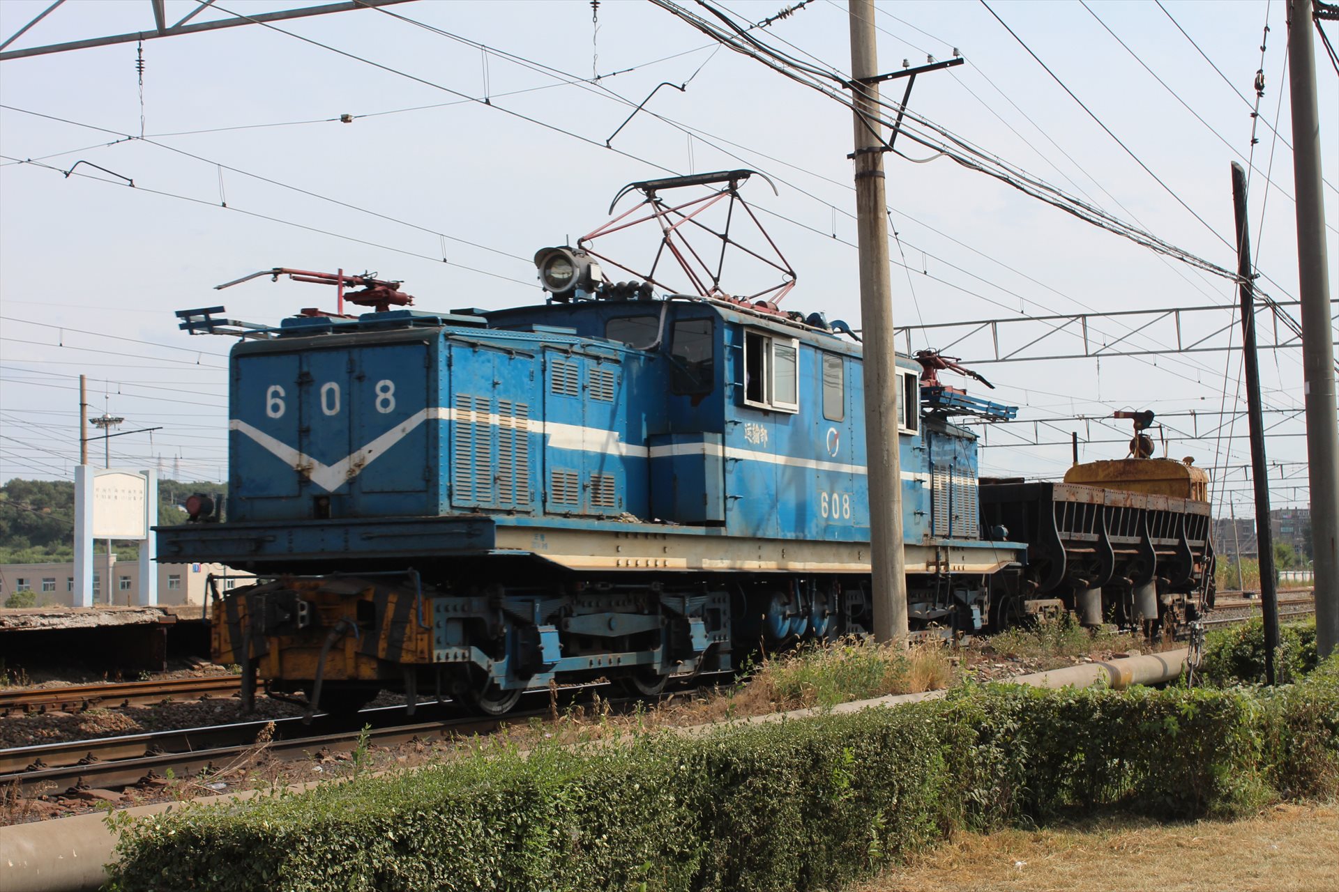博物館の近くには現役の炭鉱鉄道が走っている。韶峰型電気機関車が石炭車を牽引してきた。