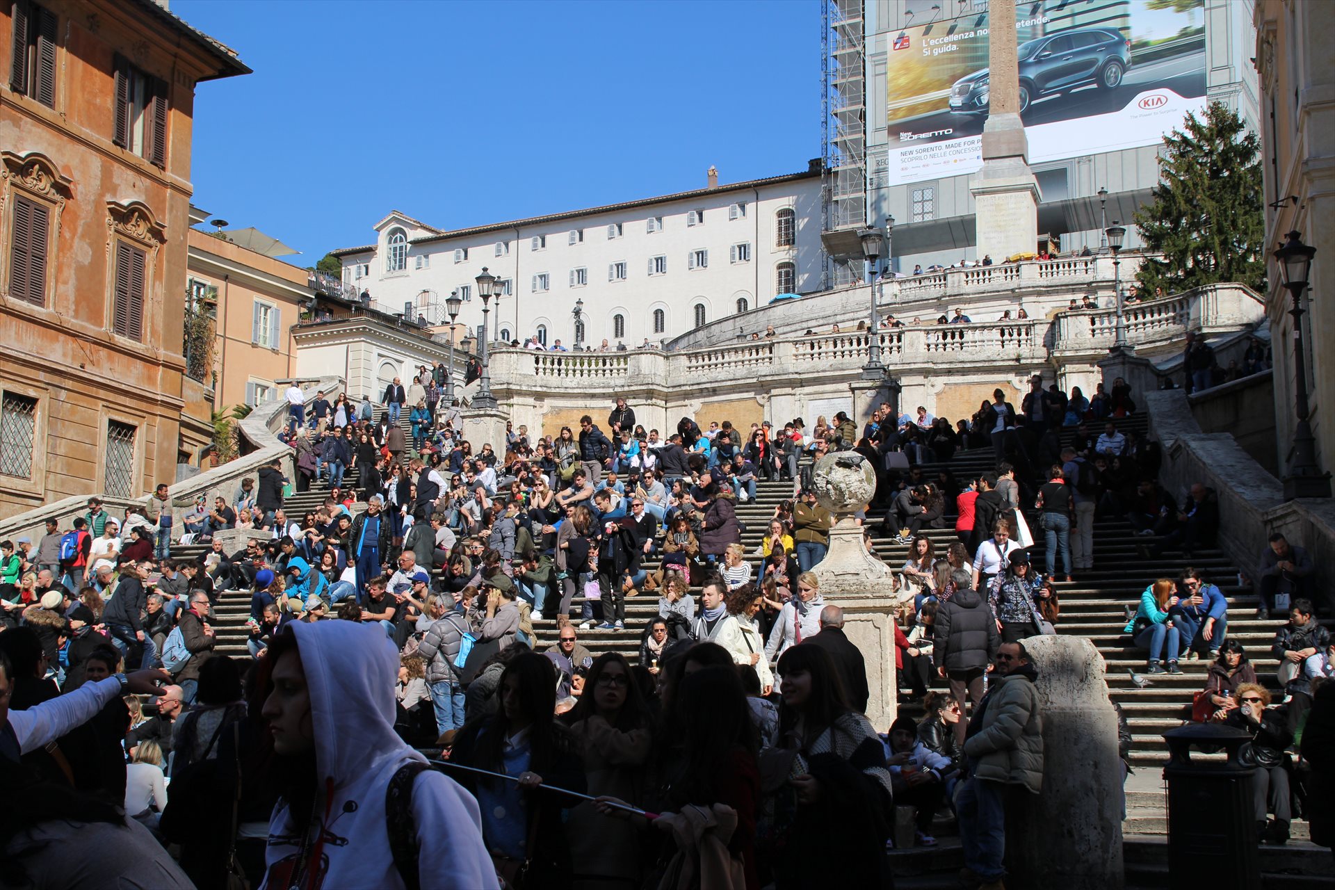 スパーニャ広場(スペイン広場)は、映画『ローマの休日』に出てきた超有名スポットである。イタリアにあるのに「スペイン広場」という名前なのは、近くにスペイン大使館があるためらしい。